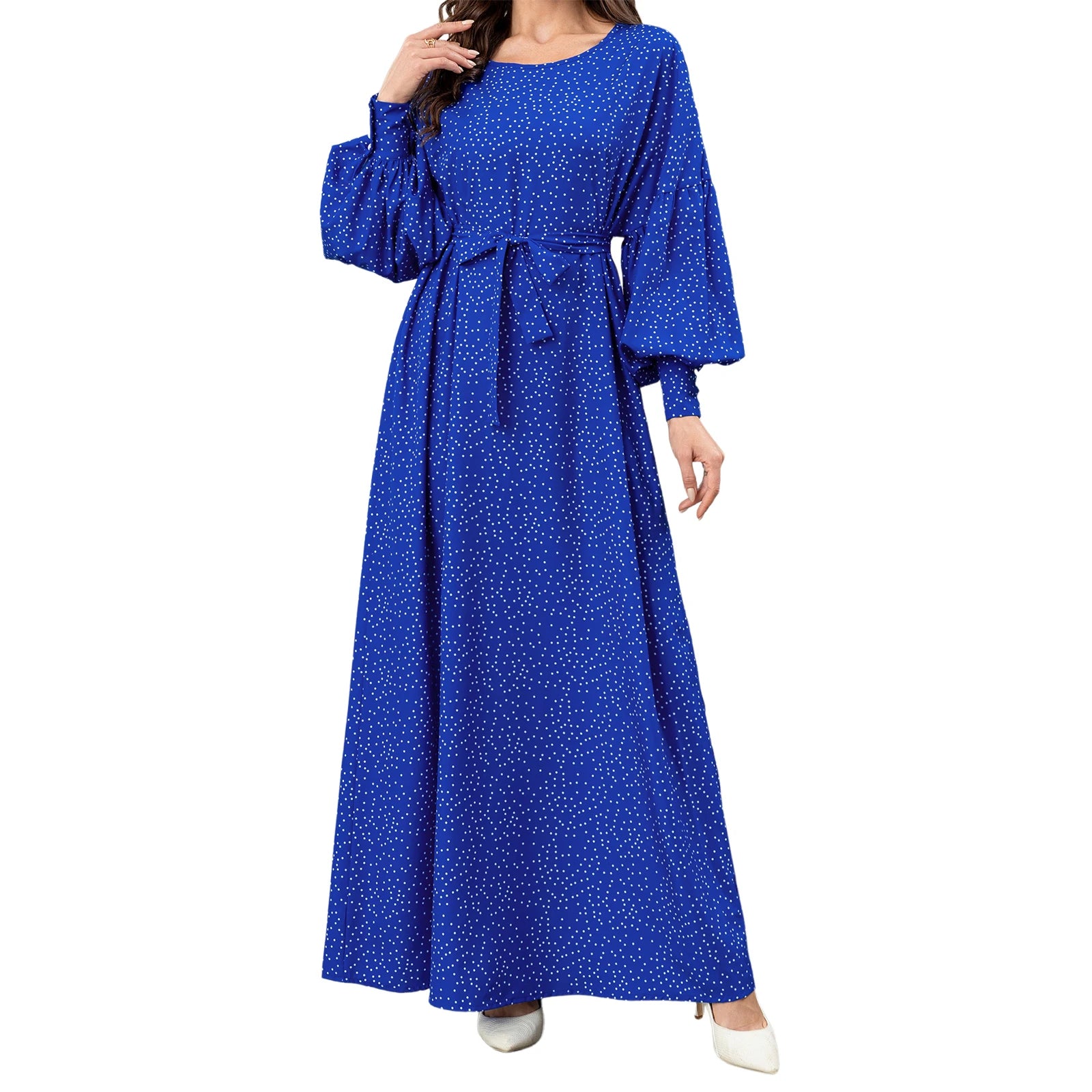 Elegant Floral Print Maxi Dress with Flowy Silhouette and Long Sleeves Inspired by Middle Eastern Fashion Trends