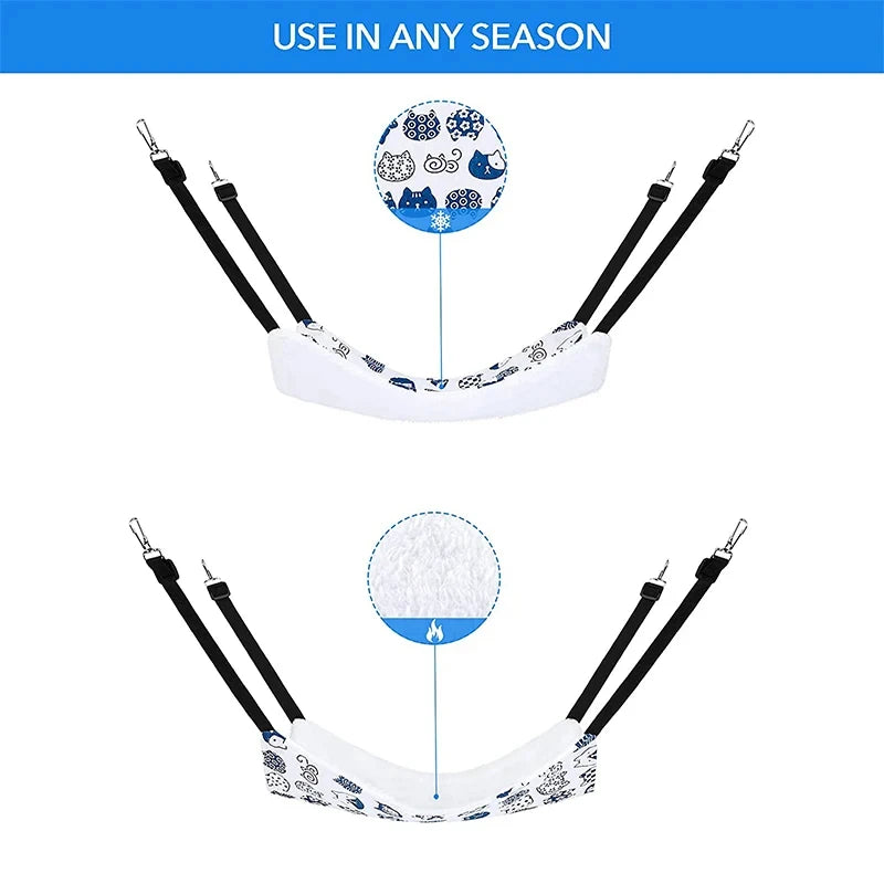 Cat Hanging Hammock with Adjustable Straps Double-Sided Pet Cage Hammock Hanging Bed Resting Sleepy Pad for Small Animals Pets